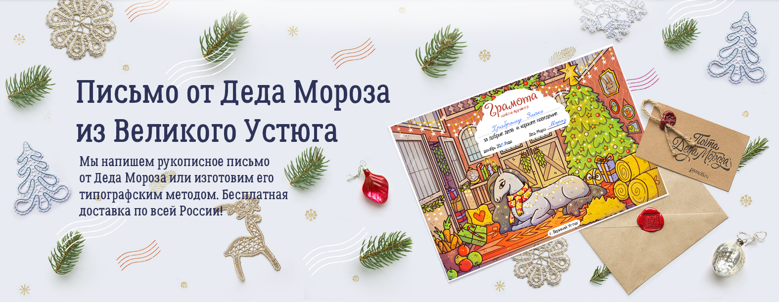 Бесплатная доставка новогодних писем от Деда Мороза по всей России, с удовольствием отправляем письма и за рубеж;
