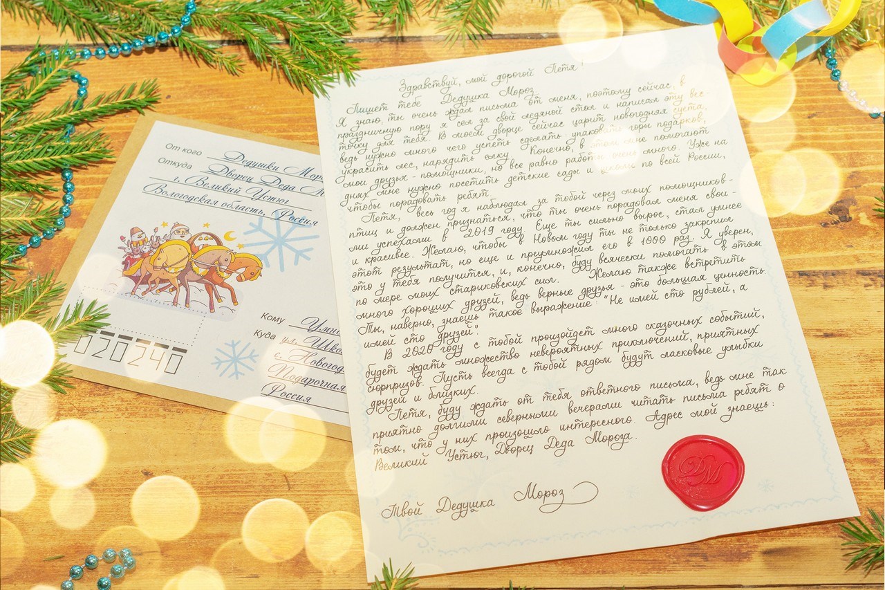 Выбранный вами текст письма наш Дедушка и его подмастерья пишут на фирменно украшенном бланке вручную гелевой, перьевой или капиллярной ручкой, в зависимости от типа бумаги. В нашем сказочном почтовом отделении был разработан уникальный Дедушкин почерк, который вы врят ли где-то встретите. Он по-старинке красивый и витиеватый, но в то же время не каллиграфичный, ведь стариковская рука уже не так тверда!