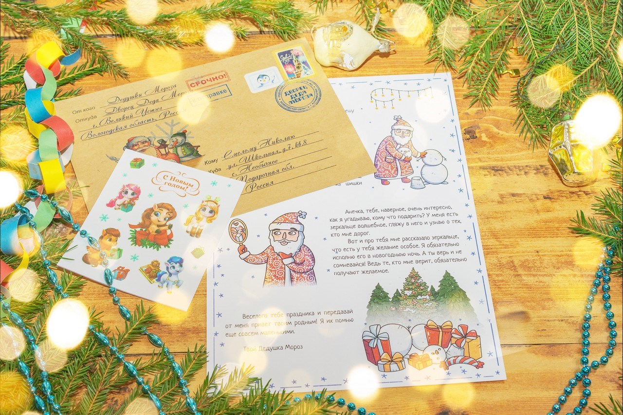 Ура! Наша художница Луиза пополнила полюбившуюся всем серию иллюстрированных писем новым сюжетом! В этом красочном и волшебном письме речь пойдет про то, с какими трудностями сталкивается Дед Мороз в то время, как собирает подарки для ребят. В письме читатель узнает и увидит, как Дед Мороз пользуется волшебным зеркалом, чтобы узнавать о желаниях детей, и то, как могут распадаться снеговики, слегка перестаравшись с работой по комплектации подарков.
